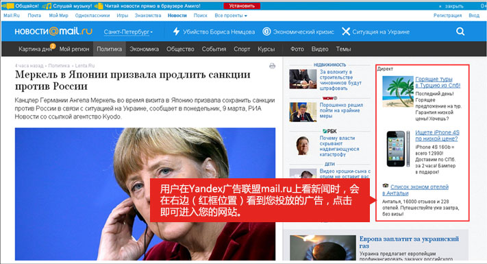 Yandex在俄语国家的地位就好比百度在中国一样,家喻户晓。在俄罗斯,Yandex更是近1.5亿网民的首选搜索引擎,而且活跃度高。如您希望将产品打入俄语市场,Yandex将是您的最佳选择。